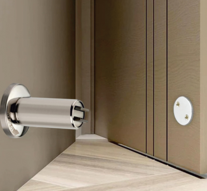 Aluminium door stopper with anti-slip rubber bush. Available in SS finish and Matt Alum. finish. (DS-1)