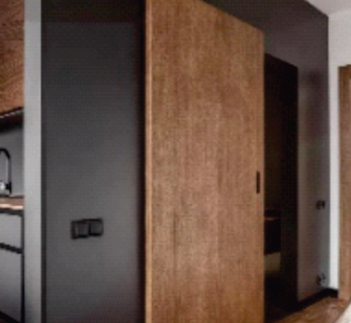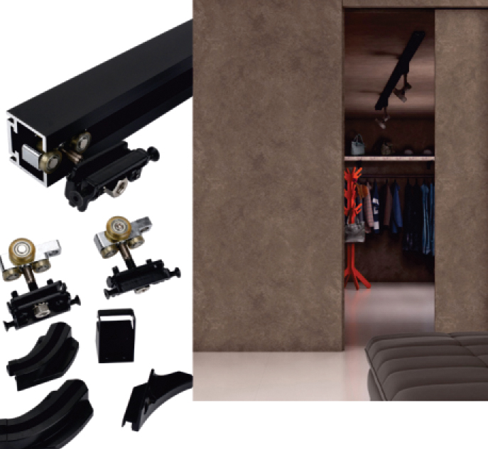 This is a hidden sliding fitting and is not visible wether door is open or closed. It comes without bottom track for door width of 800mm to 1200mm. (IDF-1)